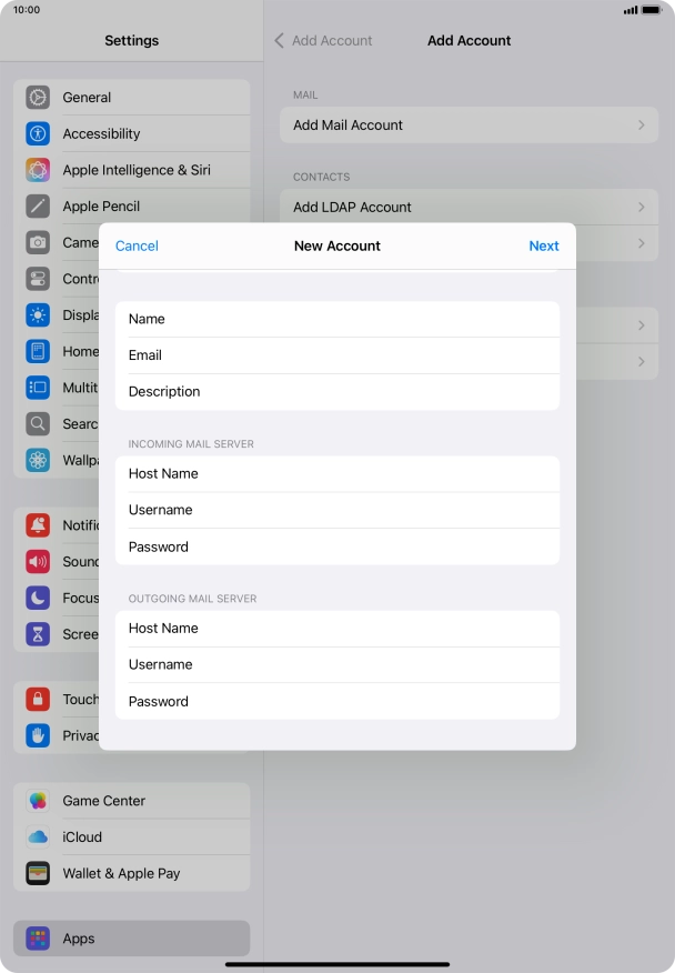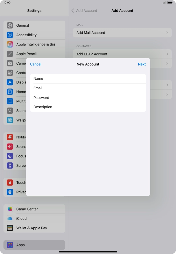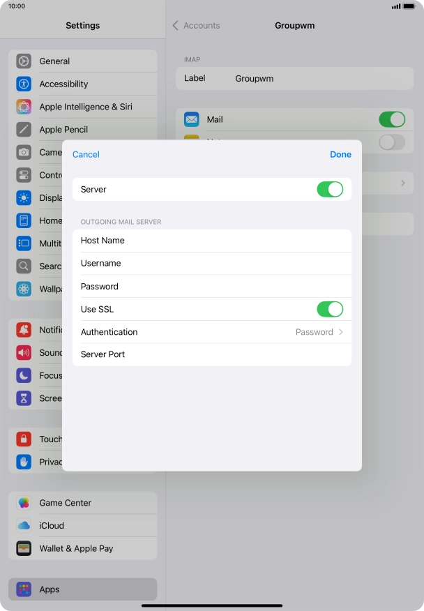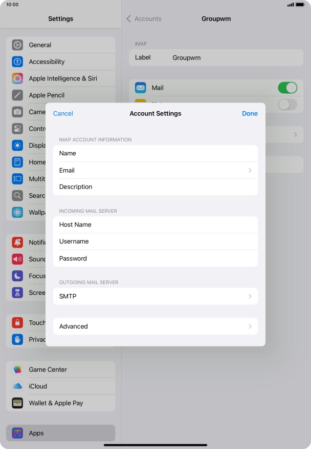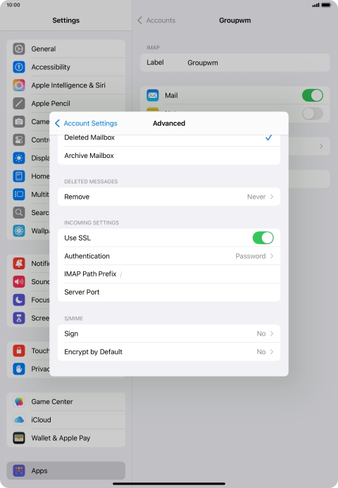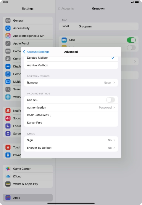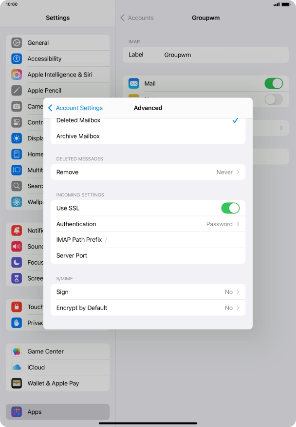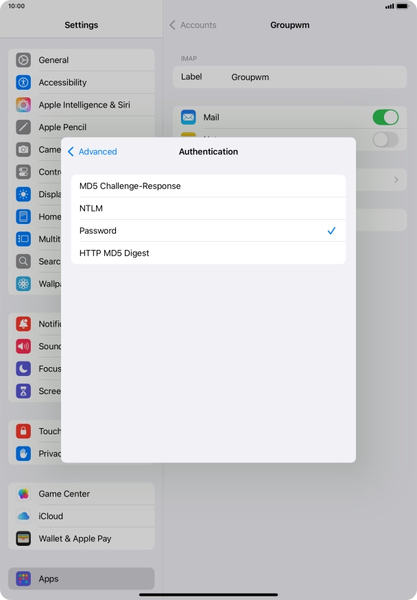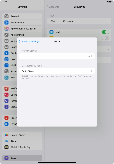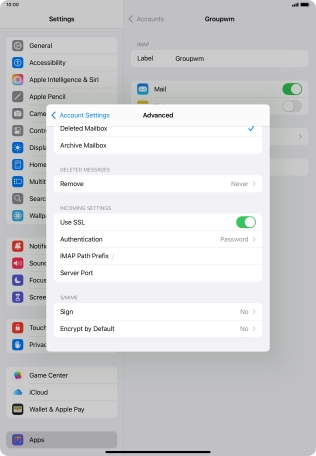 I can't send and receive email messages on my Apple iPad Air (2022) iPadOS 18