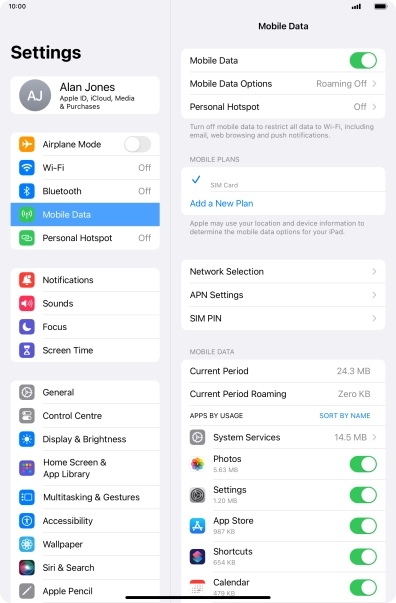 Press Mobile Data.