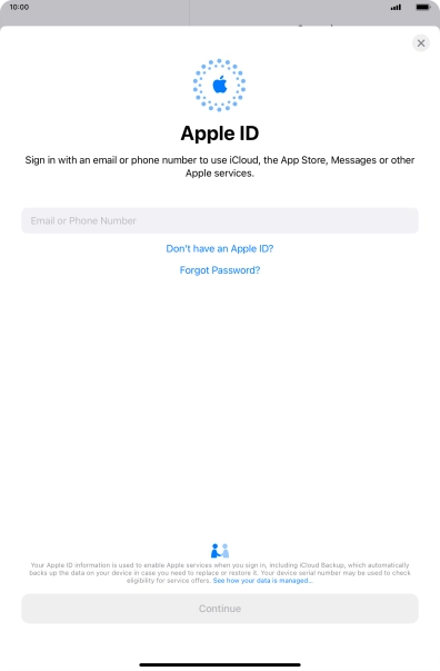 Activate Apple ID on your tablet