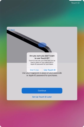 Follow the instructions on the screen to turn on use of Touch ID or press Set Up Touch ID Later.