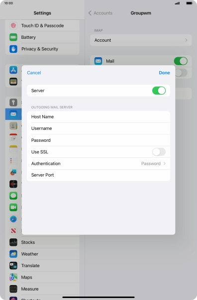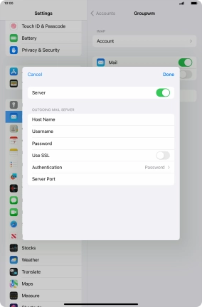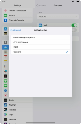 Press Password and key in the password for your email account.