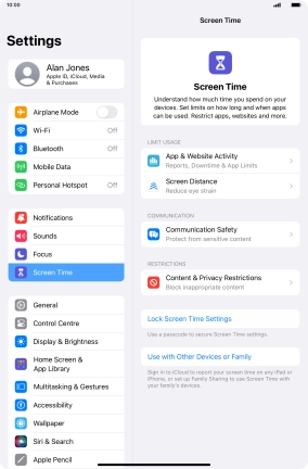Press Screen Time and optionally select the required member of your family group.