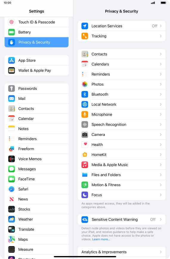 Press Privacy & Security.