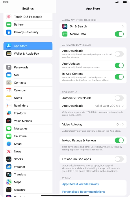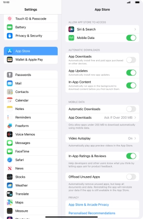 Press the indicator next to "Automatic Downloads" to turn the function on or off.