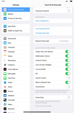 Press the indicator next to "Erase Data" to turn the function on or off.