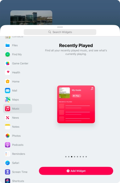 If the required widget is not displayed on the list, press the search field and follow the instructions on the screen to find the required widget.