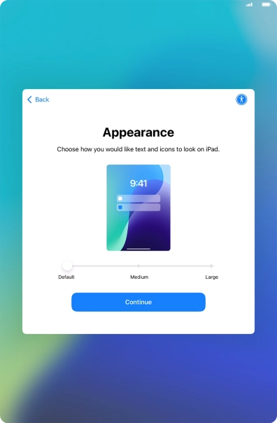 Select the required text and icon size on your tablet and press Continue.