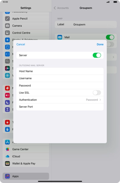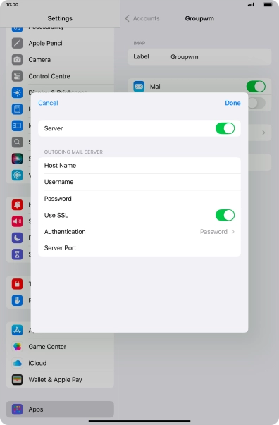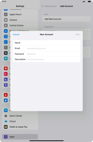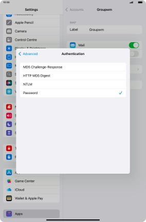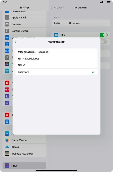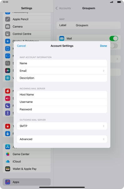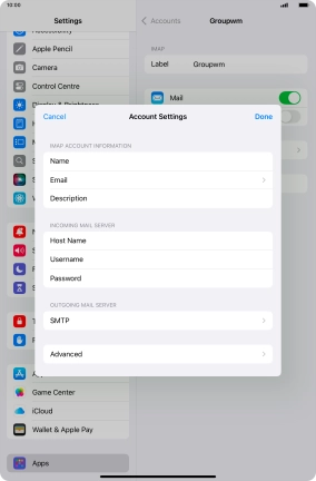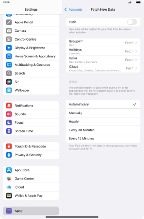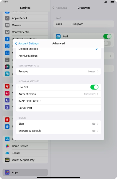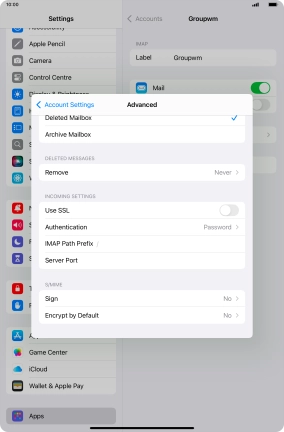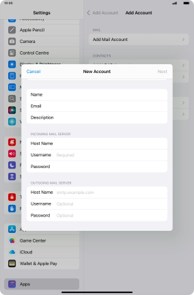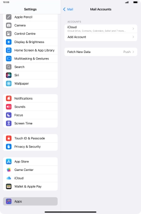 Press the required email account and follow the instructions on the screen to select settings for the specific account.