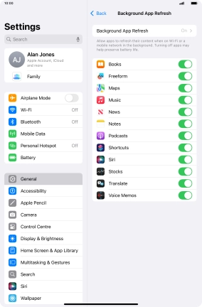 To turn off background refresh of apps, press Off.