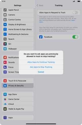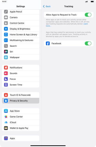 Press the indicator next to "Allow Apps to Request to Track" to turn the function on or off.