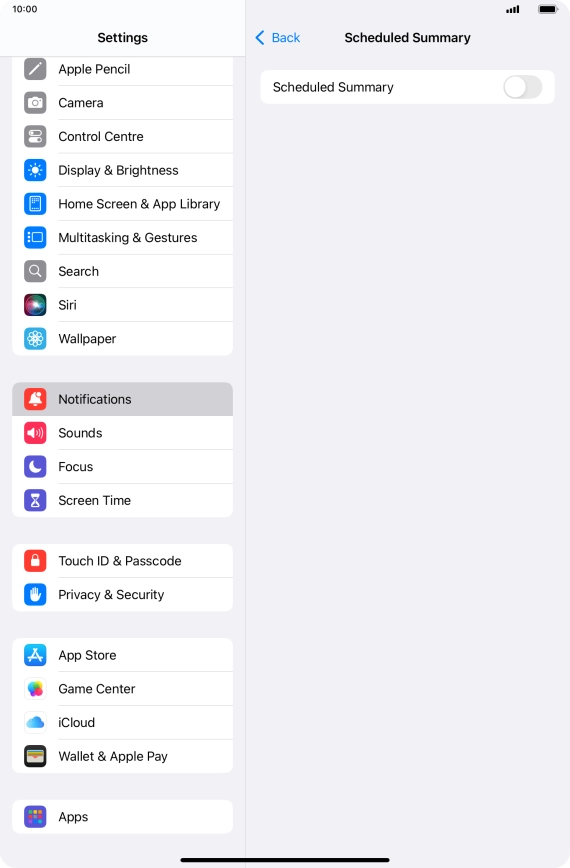 Press the indicator next to "Scheduled Summary" to turn on the function and follow the instructions on the screen to set the notification summary.