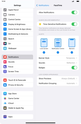 Press the indicator next to "Time-Sensitive Notifications" to turn the function on or off.
