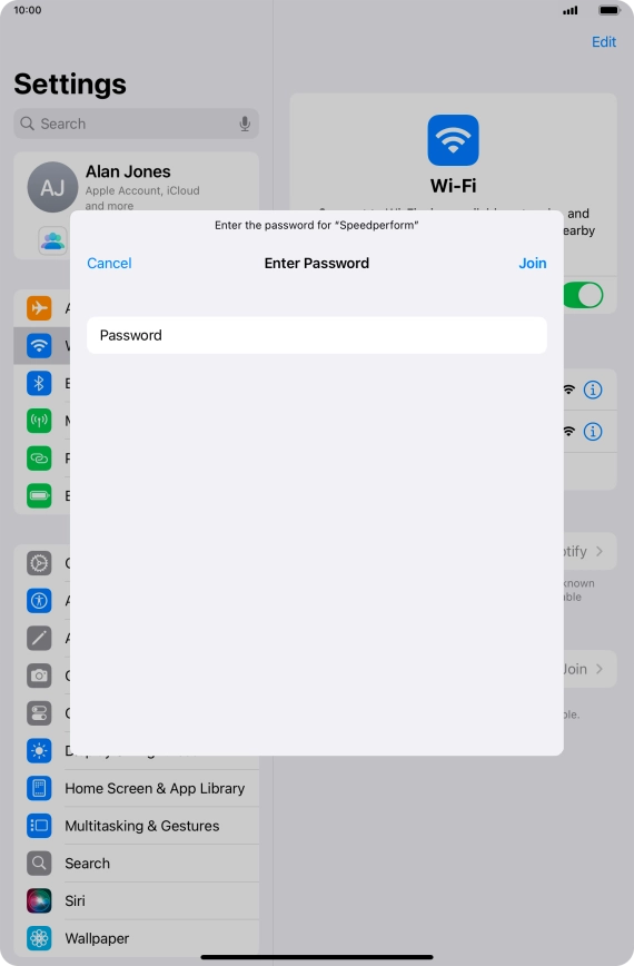 Press the required Wi-Fi network and key in the password for the Wi-Fi network.