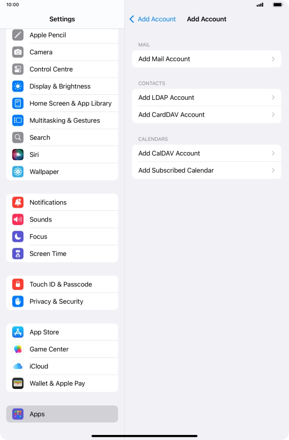 Press the required email account and follow the instructions on the screen to select settings for the specific account.