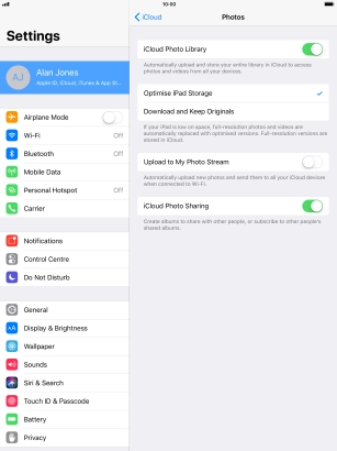 Synchronise the contents of your tablet using iCloud