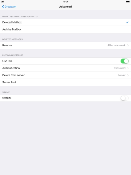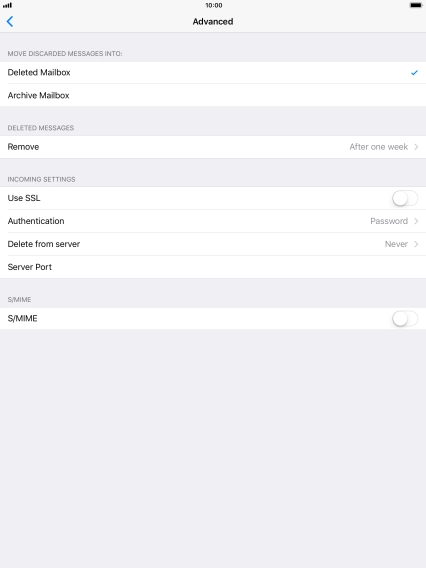 Press the required email account and follow the instructions on the screen to select settings for the specific account.