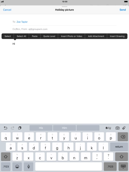Press the text input field and write the text for your email message.