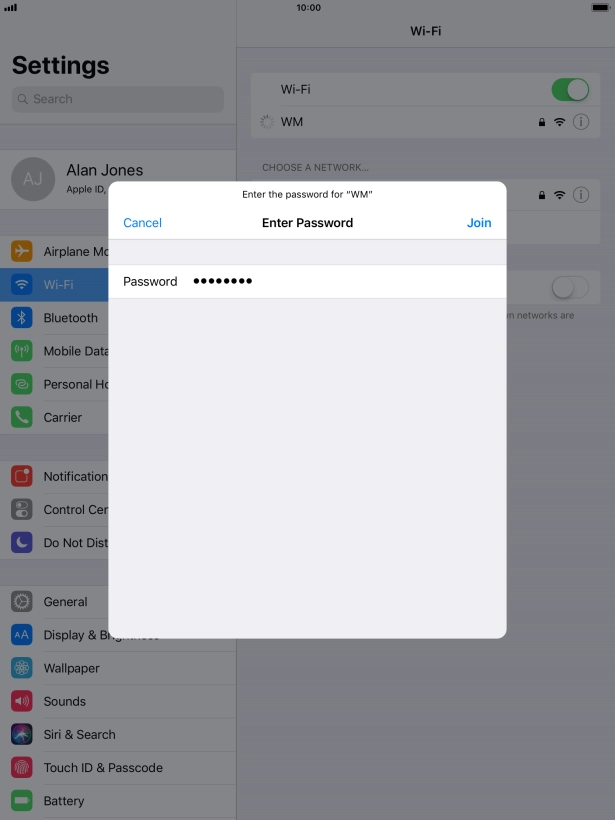 Press the required Wi-Fi network and key in the password for the Wi-Fi network.