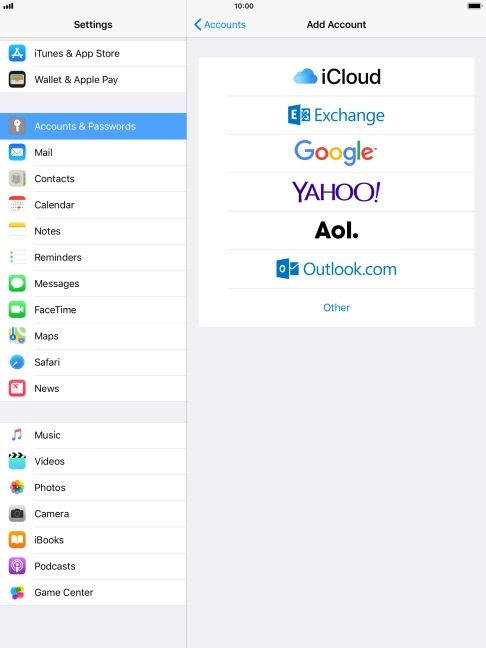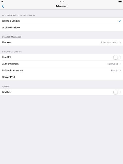 Press the required email account and follow the instructions on the screen to select settings for the specific account.