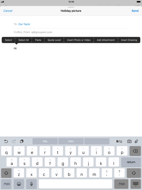 Press Insert Photo or Video and follow the instructions on the screen to attach a picture or a video clip.