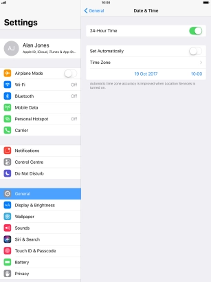 2 Turn on automatic update of time zone, time and date.