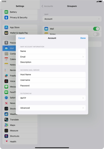 You can set up your tablet to send and receive email messages from your email accounts. Using IMAP, your email messages are kept on the server and are synchronised between all of your devices. You're then able to access your email messages from other devices. To set up your tablet for IMAP email, you need to set up your tablet for internet.