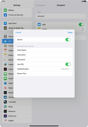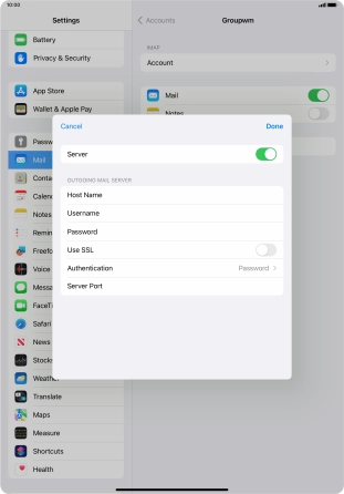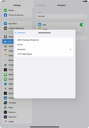 Press the required email account and follow the instructions on the screen to select settings for the specific account.