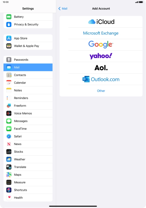 If the name of your email provider is on the list, press this instead.