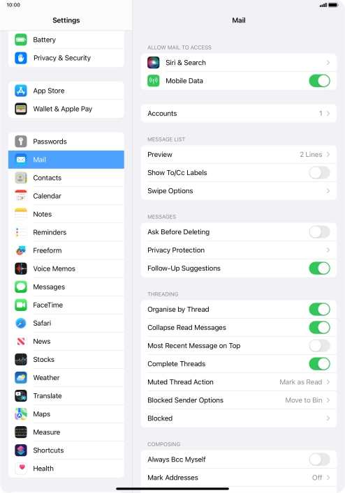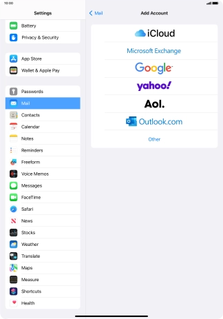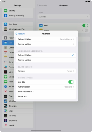 Press the required email account and follow the instructions on the screen to select settings for the specific account.