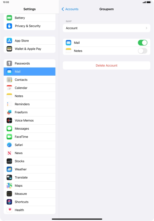 Press the name of the email account you've just set up.
