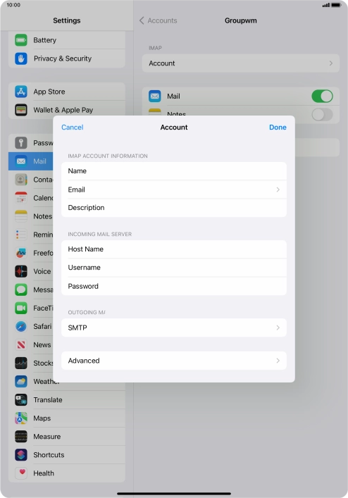 Press Username and key in the username for your email account.