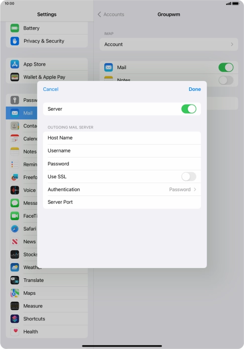 10 Enter outgoing server
