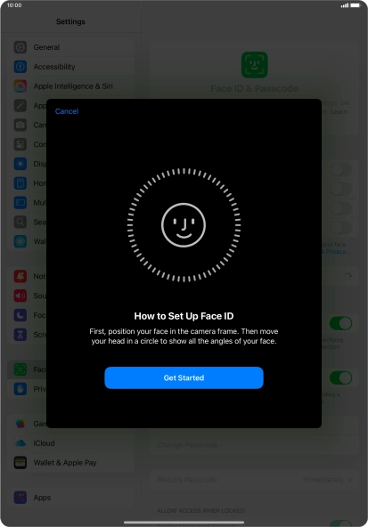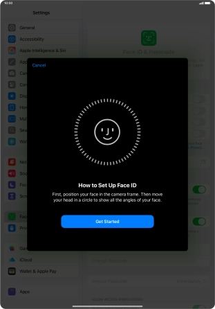 Press Get Started and follow the instructions on the screen to set up Face ID.