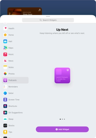 If the required widget is not displayed on the list, press the search field and follow the instructions on the screen to find the required widget.