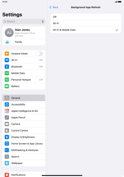 To turn off background refresh of apps, press Off.