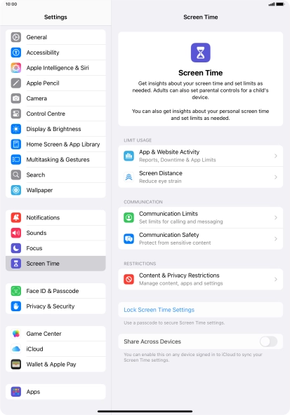 Press Screen Time and optionally select the required member of your family group.