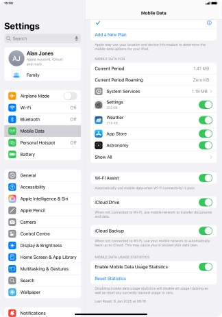 My Apple iPad Pro 11 (2021) iPadOS 18 uses a large amount of mobile data