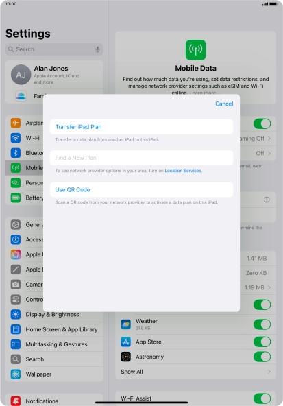 In addition to your normal SIM, you can also use an eSIM in your tablet. An eSIM is a digital SIM that enables you to activate a price plan without the use of a physical SIM. To activate your eSIM, you need to set up your tablet for internet.
