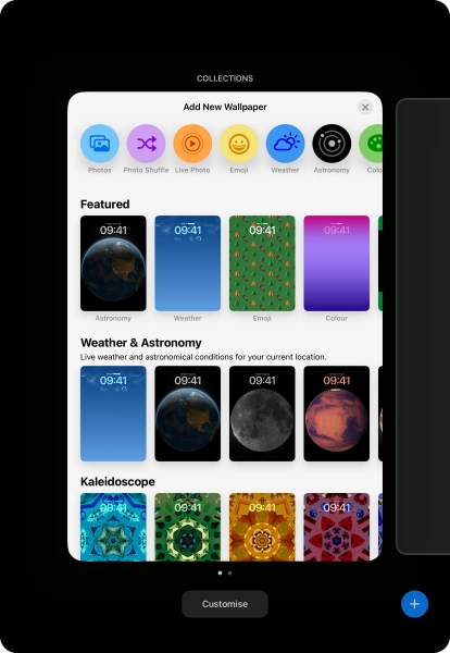 Press Customise and follow the instructions on the screen to customise the selected lock screen.