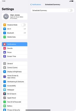 Press the indicator next to "Scheduled Summary" to turn on the function and follow the instructions on the screen to set the notification summary.