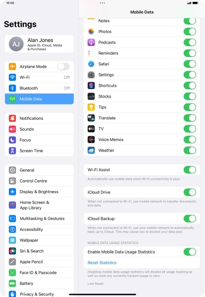 Press Mobile Data.