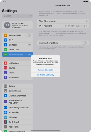 If Wi-Fi is turned on, press Wi-Fi and USB Only.