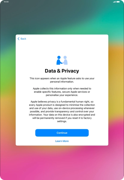 Follow the instructions on the screen to turn on use of Face ID or press Set Up Later.