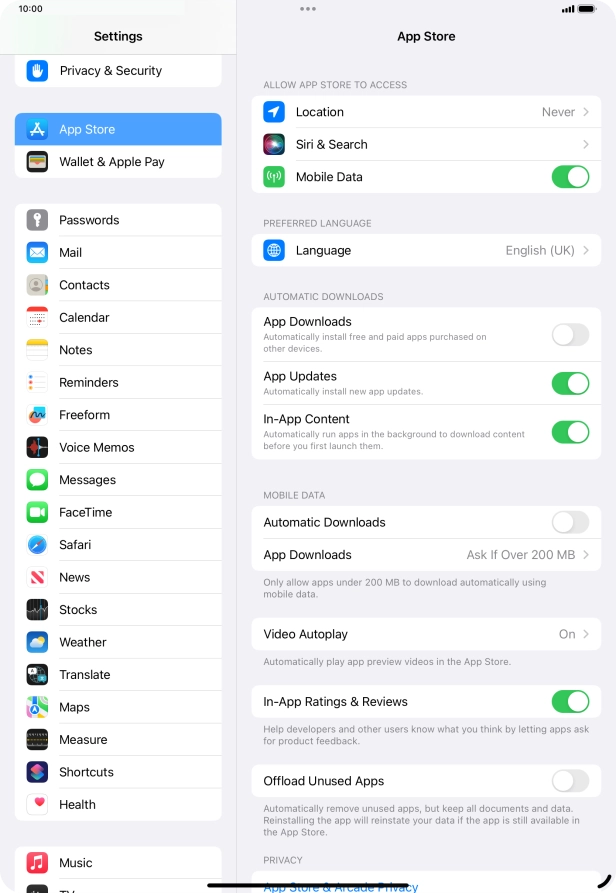 Press the indicator next to "App Downloads" to turn the function on or off.