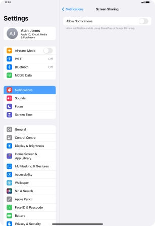 You can turn display of notifications when using SharePlay or Screen Mirroring on or off.