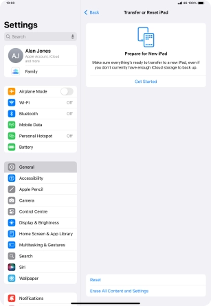Press Transfer or Reset iPad.