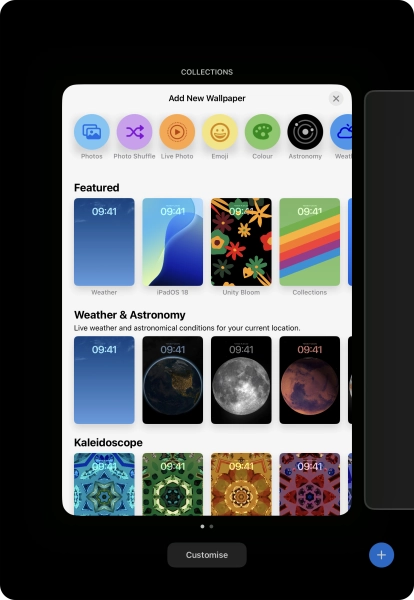 Press Customise and follow the instructions on the screen to customise the selected lock screen.