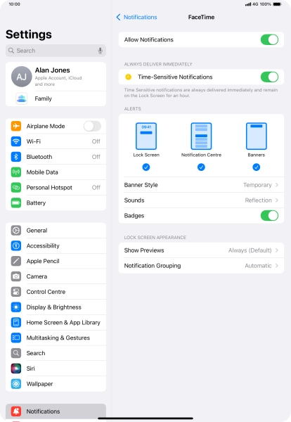 Press the indicator next to "Time-Sensitive Notifications" to turn the function on or off.
