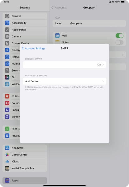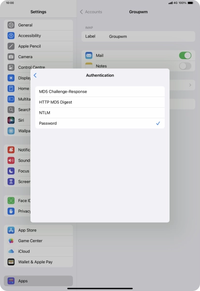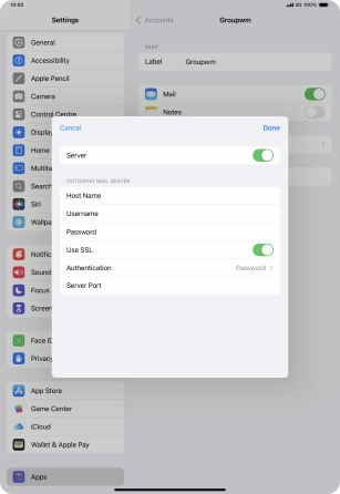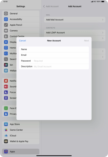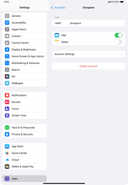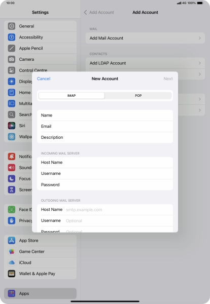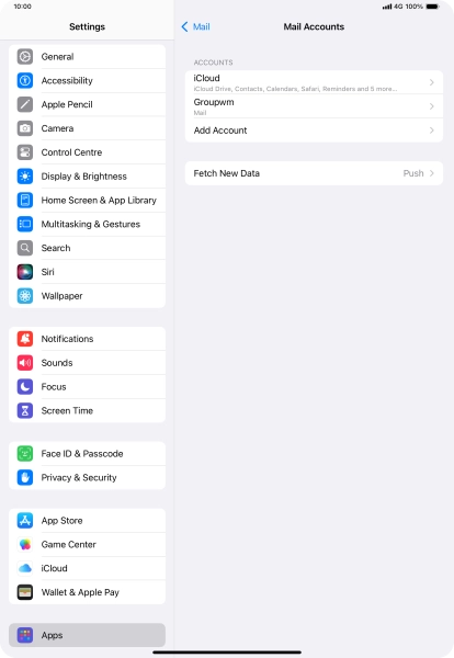 Press the required email account and follow the instructions on the screen to select settings for the specific account.