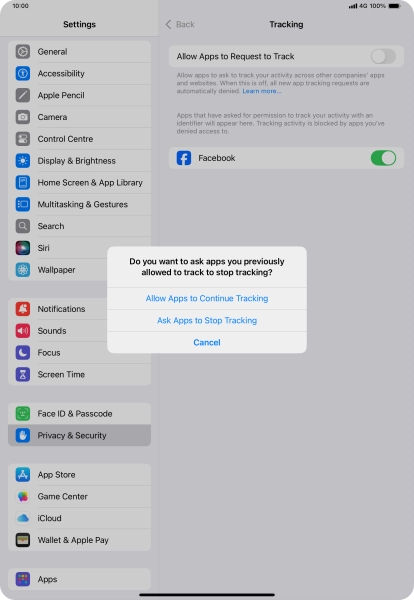Press the indicator next to "Allow Apps to Request to Track" to turn the function on or off.